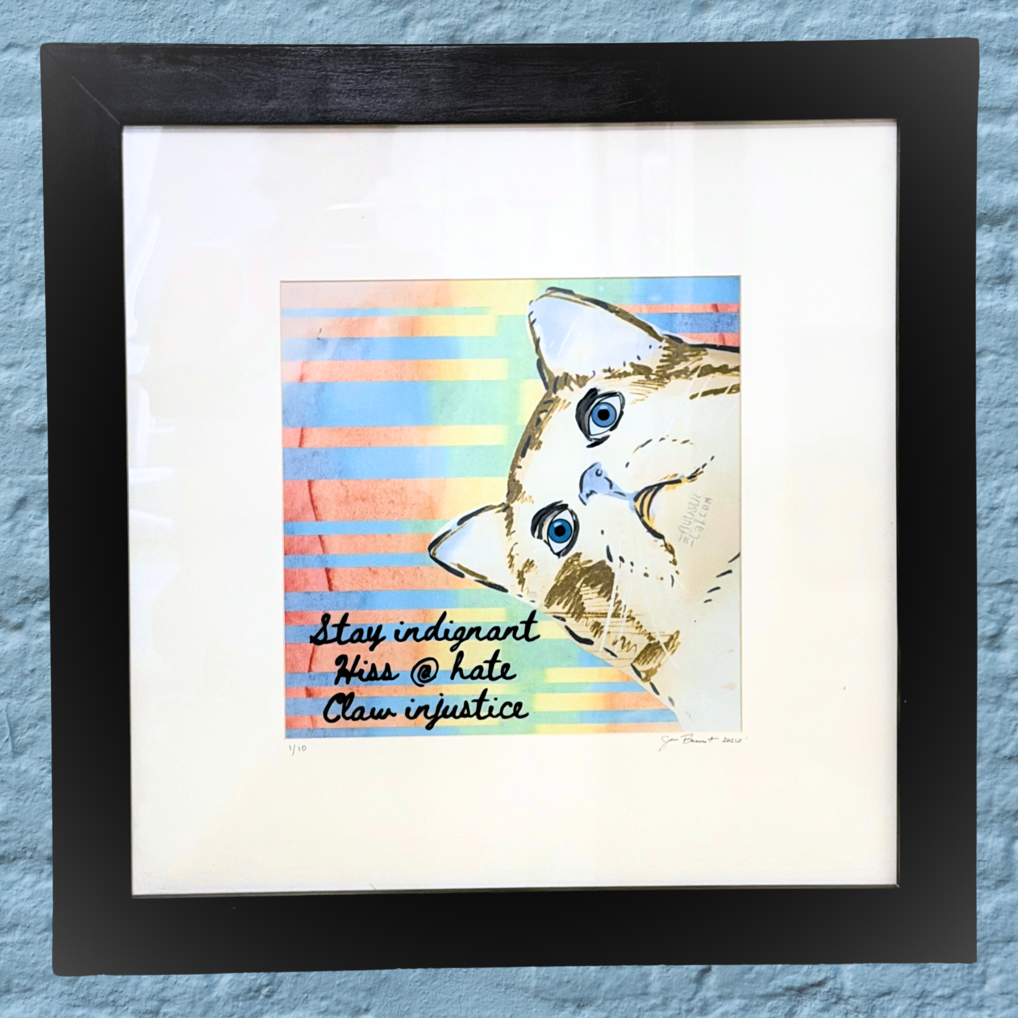 As a mixed-media and digital collage artist, Jen uses bold acrylics, graphic design, vivid sublimation, and integrated beadwork to create fun, quirky compositions that celebrate life, neurodiversity, and cats. The Autistic Cat can be found at the Lakewood Arts Gallery and the Kanon Collective, both in Lakewood, Colorado.