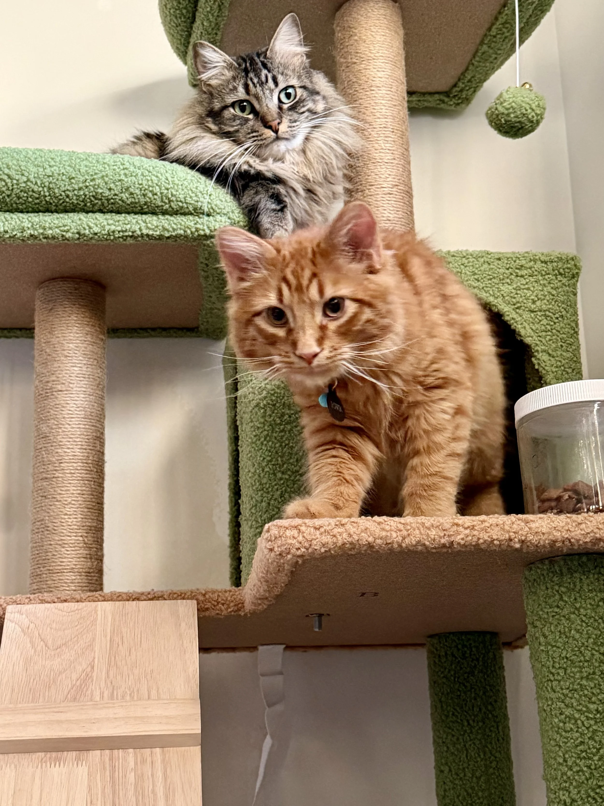 Our family grew even more when we met Mamma Marlee and her son, Rowan (or "Roe Roe"). These two were adopted through the Aurora Animal Shelter in Aurora, Colorado, and their fantastic foster mom, Elin. Marlee is FeLV-positive, but she doesn't let a diagnosis define her. She and Rowan are usually inseparable, at least until Rowan starts acting like a typical son and gets on her last nerve. That is when the cuddling stops, and she has to remind him that she is still the Mamma!
